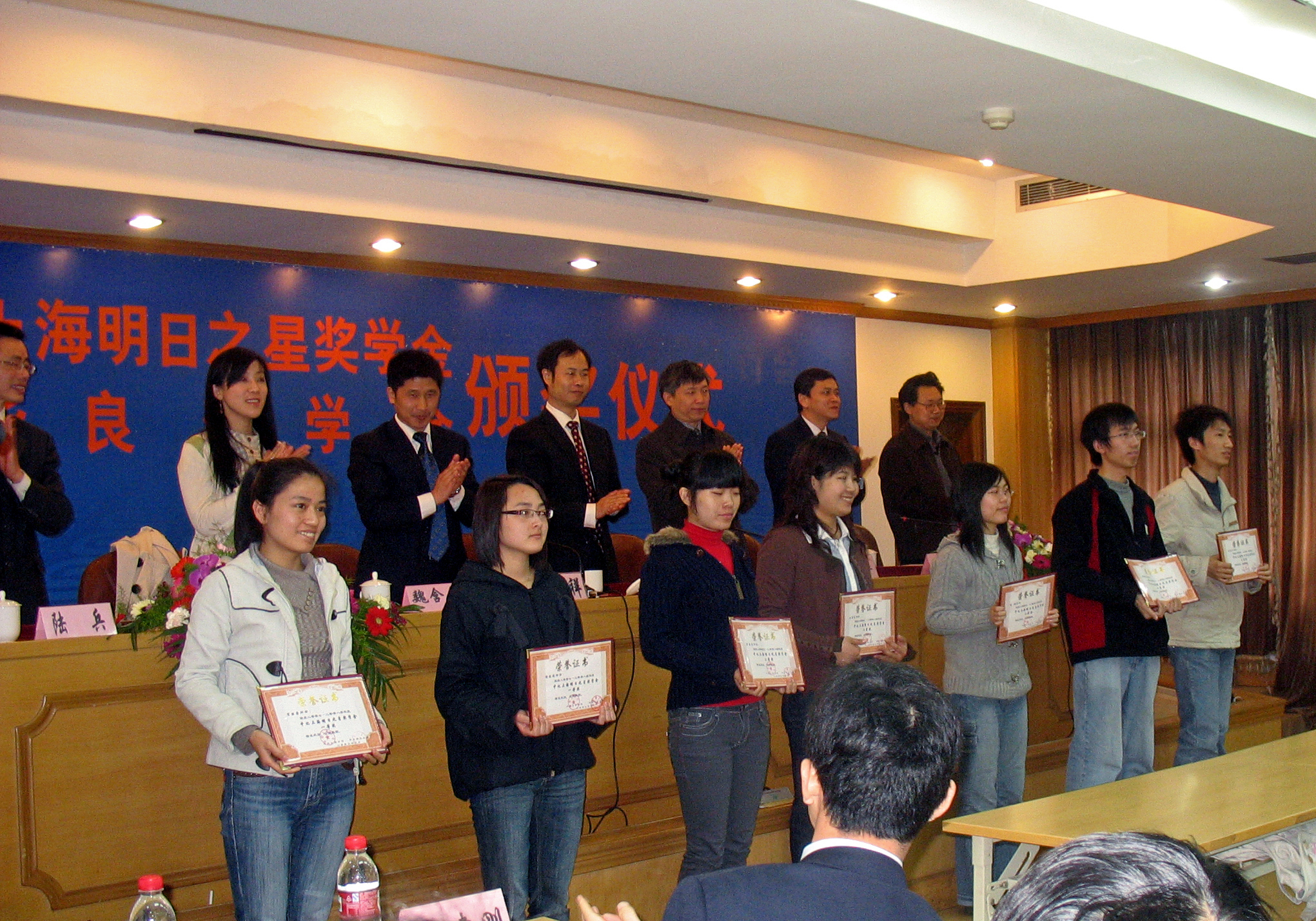 “两奖”——中化上海明日之星暨蒋华良奖学金颁奖仪式在此隆重举行。中化上海公司总经理刘建平、副总经理胡汉春等嘉宾以及校学工部副部长王爱祥老师、吃瓜黑料网