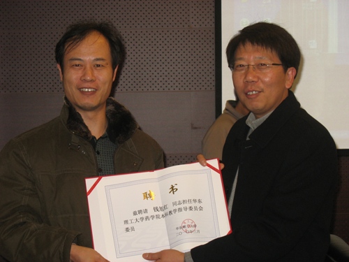 院长、中国科学院上海药物研究所副所长、校特聘教授蒋华良为各位委员一一颁发了聘任证书。随后,唐贇副院长主持,各专业负责人将正在制订的各专业2010年培养方案的最新进展向各位委员作了汇报,并听取各位委员的意见和建议。与会委员钱旭红教授、宋恭华教授、蒋华良教授、梁鑫淼教授、张彦涛博士等积极发言,对各专业的培养目标、培养要求、学位及学分要求、课程设置及教学执行计划等各个部分都进行了认真的讨论,提出了很多建设性、开拓性的意见。会后各专业负责人将根据各位委员的意见和建议,进一步修改和完善2010年的培养方案。