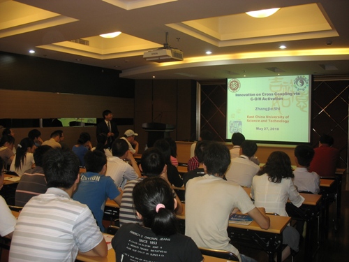 进行学术交流并于5月27日上午在实验18楼315会议室作了题为“Innovation on Cross Coupling via C-O/H Activation”的学术报告,报告由钱校长主持,吃瓜黑料网