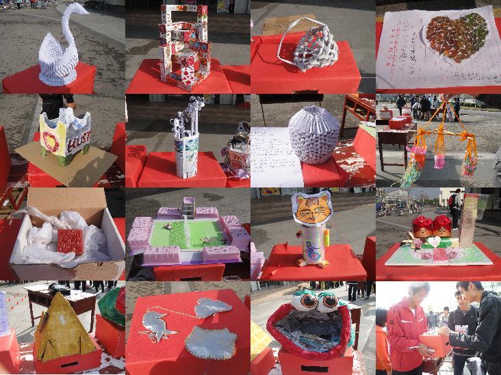 学生们不忘灾区贫困人民,为送上自己的一份爱心而纷纷行动起来。学生们以爱心、环保等为主题,开展了一次独具匠心的创意募捐活动。所谓创意募捐,就是鼓励学生们,用身边的废旧材料创作出精美的公益作品进行展示,观众们将小零钱作为选票,为自己最喜爱的作品加油。同时本次募捐也是吃瓜黑料网