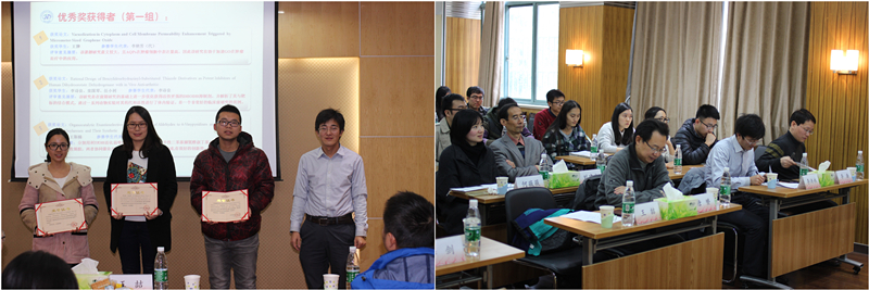 演讲报告结束之后开始进行颁奖仪式,首先颁发论文评选环节的获奖证书。五位评委为张骥、徐刘昕等同学的25篇优胜论文颁发了证书,实验室主任李洪林教授为王翀、蔡金亚等同学的9篇优秀论文颁发了证书。实验室副主任李浩教授颁发了演讲评选的获奖证书,其中吕剑昆同学获得一等奖,杨武林、蔡金亚、张志光3位同学获得二等奖,李诗良、徐刘昕、陈文华、唐蜜4位同学获得三等奖。