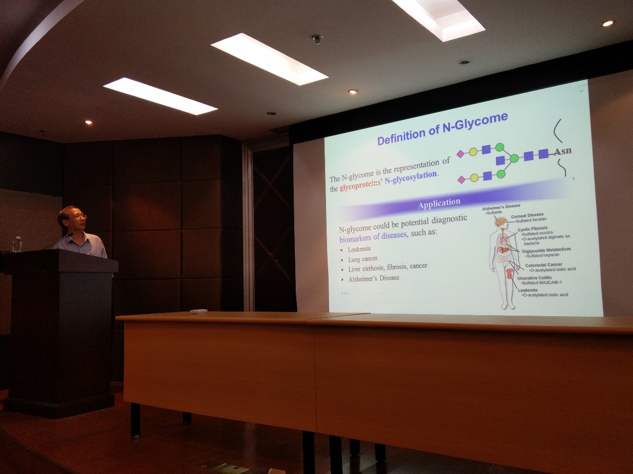 姜志宏教授主要从事天然药物化学、代谢组学、生物有机化学等方面的研究。报告会上,姜志宏教授生动的介绍了其课题组运用世界上第一个TiO2-PCG LC-chip建立了崭新的acidic N-glycan检测技术平台,并就如何运用此方法对人血浆中的IgG进行分析,寻找类风湿性关节炎相关的biomarkers,用于诊断分析展开详细的工作介绍,引人入胜,为与会者提供了全新的思路。