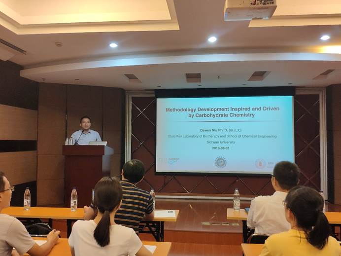 邀请,四川大学化学工程学院副院长、教授、博士生导师,国家优秀青年科学基金获得者钮大文教授于8月31日下午于实验十八楼315报告厅为华理师生做了题为“Methodology Development Inspired and Driven by Carbohydrate Chemistry”的名师讲坛学术报告。报告会由邓卫平教授主持。
