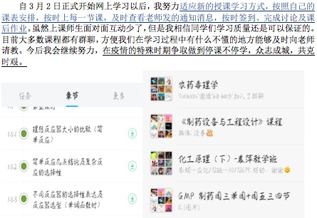 在科学防疫的同时,学生党员们时刻牢记自己作为一名学生的主业,“居家”期间也能合理安排自己的学习时间和任务,认真学习网课、总结归纳实验结果、制定后续实验计划、查阅资料夯实基础、阅读文献提升能力、在线上与老师和同学交流探讨,为之后的学习和实验打好基础。