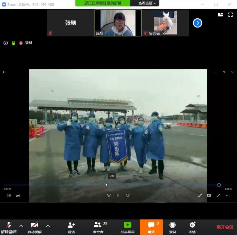 图片说明:本科生党员陈妍分享的自己担任防疫志愿者的经历