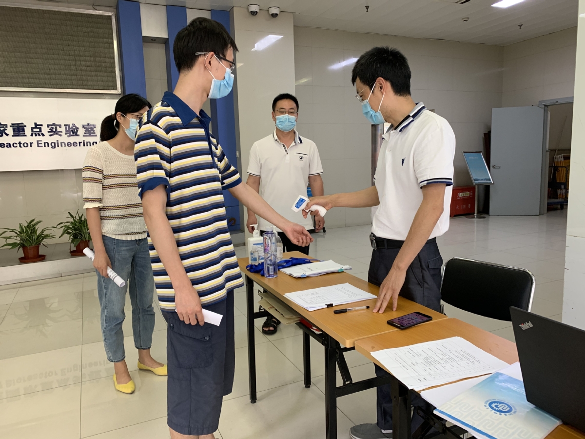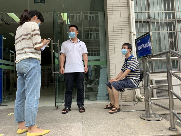 本次应急演练模拟了学生在实验室发生体温异常的突发状况。发现学生温异常(>37.3 ℃),第一时间报告导师和辅导员,并在导师和辅导员的陪同下,从应急楼梯到达学院设定的体温监测点。学院志愿者老师对发热学生进行体温复测,学生在等候区休息。如确认学生体温仍然异常,导师和辅导员陪同该生前往校医院进一步检测。同时,辅导员将学生情况上报给学院党委副书记,由副书记将学生情况通报给学院疫情防控领导小组组长。