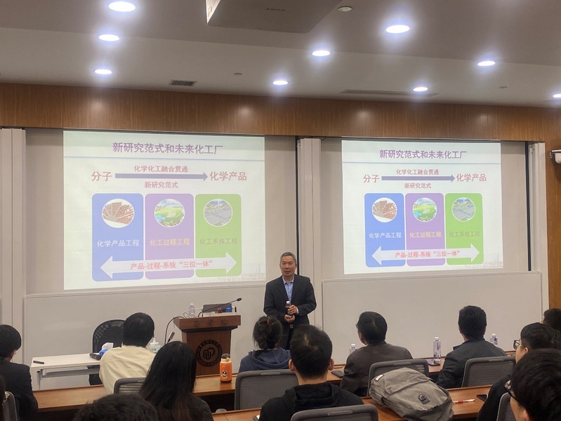 骆广生的主要研究方向为微化工技术、分离科学与技术和功能材料的可控制备,在在微化工技术基础理论体系和微化工技术产业化技术创新体系建设等方面做出了系统性工作。在报告会上,骆广生从化学工业的历史使命和新时代发展理念出发,围绕我国高端化学品制造面临的现状,深入浅出地介绍了微化工技术的基础理论和前景优势,同时结合具体案例,详细介绍了微化工技术在高端化学品精准制备中的创新理念与工业应用。报告结束后,师生们意犹未尽,提问踊跃,骆广生也都给予耐心的解答,在座的老师和同学们均表示受益匪浅。