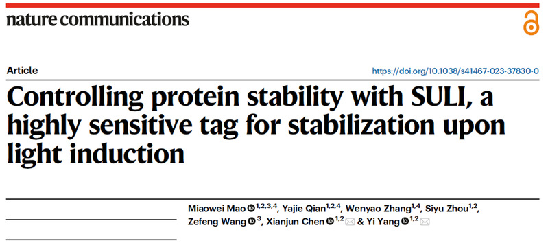 、生物反应器工程国家重点实验室、光遗传学与合成生物学交叉学科研究中心杨弋教授团队在蛋白质光遗传学控制技术研究中取得突破性进展,在国际学术期刊《Nature Communications》发表题为“Controlling protein stability with SULI, a highly sensitive tag for stabilization upon light induction”的研究文章。