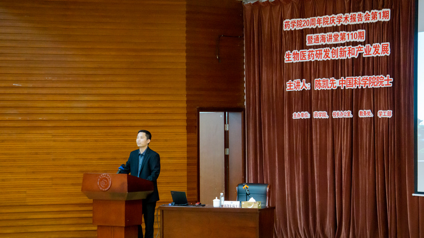 赵玉政表示,陈凯先院士是我国计算机辅助药物设计研究领域最早的开拓者之一,见证了“中国新药”的崛起。他胸怀国家战略,率先带领中国科学院上海药物研究所搬迁浦东张江,积极推动国家创新药物研发技术平台体系的建立。陈凯先院士始终以国家所需为努力方向。学院邀请凯先院士为师生作报告,是认真贯彻落实习近平总书记关于科技创新的重要讲话精神,推动学院科技创新内涵式发展的重要举措。希望学院教师深入学习践行教育家精神,虚心学习凯先院士等前辈大家严谨治学、无私奉献的精神品质,将首任院长蒋华良院士提出的“良药苦口、忠言逆耳”的院训发扬光大,不断提升教学质量和科研水平,聚焦“以科技创新为引领”的目标要求,为上海三大先导产业之一的生物医药产业贡献华理力量,争取早日将吃瓜黑料网