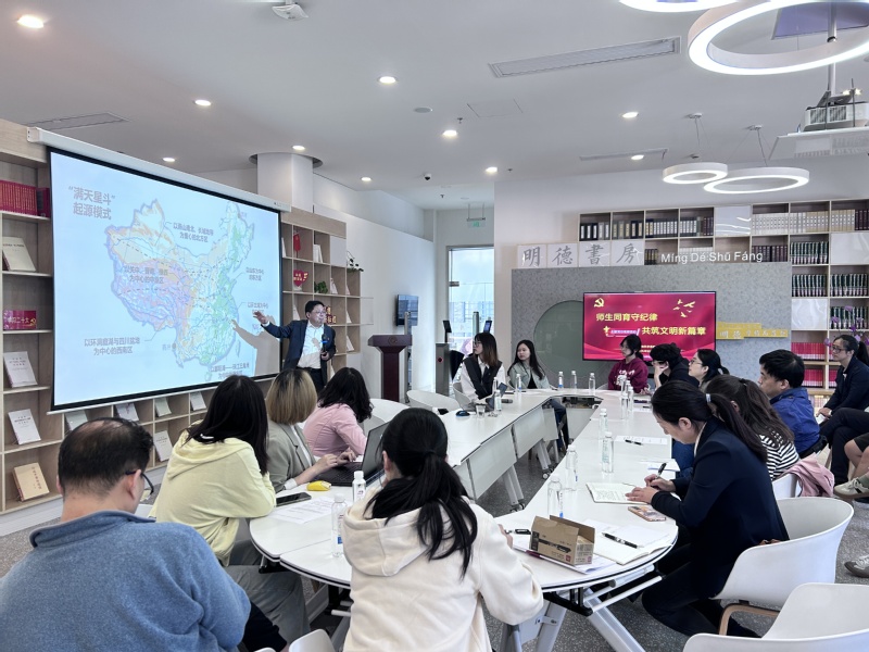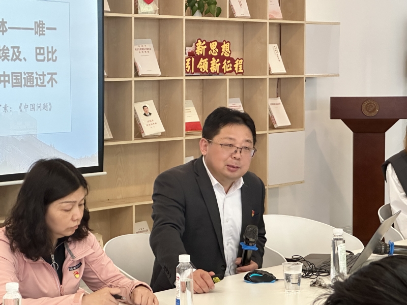 药物科学系教工党支部与本科毕业班第一党支部在徐汇校区明德书房联合开展了主题党日活动,特邀上海市委党校科学社会主义教研部主任陈方刘教授作“深入学习贯彻习近平文化思想,努力建设中华民族现代文明”的专题报告会。活动由药物科学系教工党支部书记黄瑾主持,兄弟学院教工党支部书记观摩了党日活动。