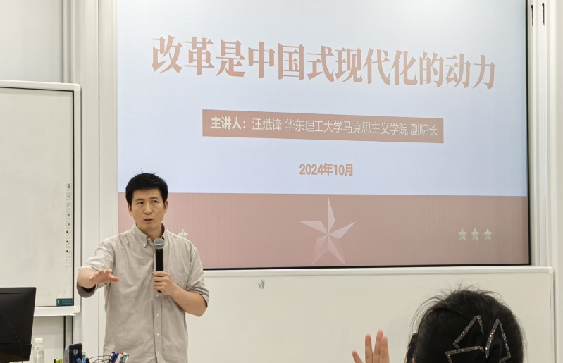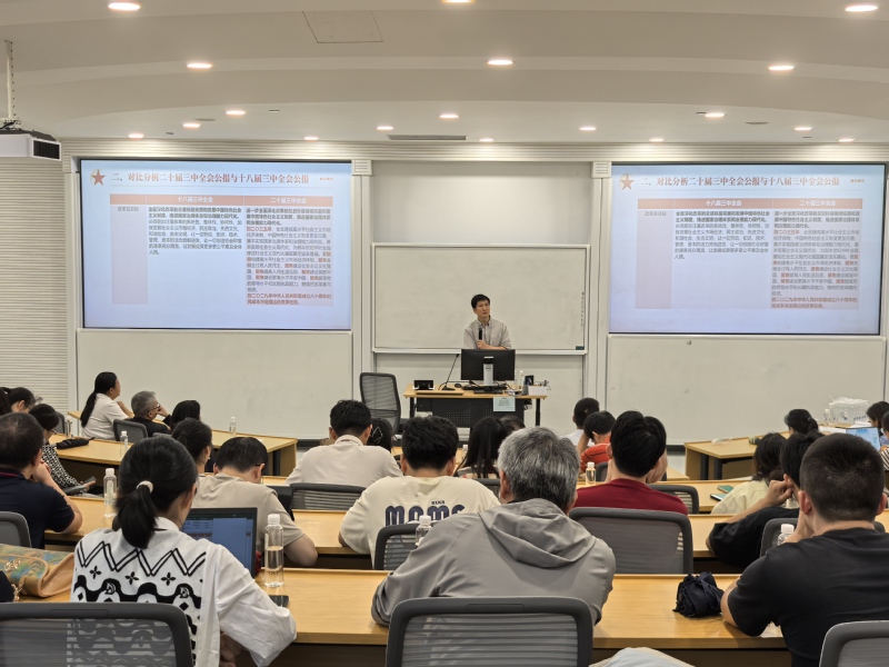 召开深入学习贯彻党的二十届三中全会精神专题学习会,邀请到马克思主义学院副院长汪斌锋副教授作“改革是中国式现代化的动力”专题报告。学院党政班子、全体教职工以及学生支部书记进行了现场学习,报告由学院党委副书记、纪委书记陈莉丽主持。