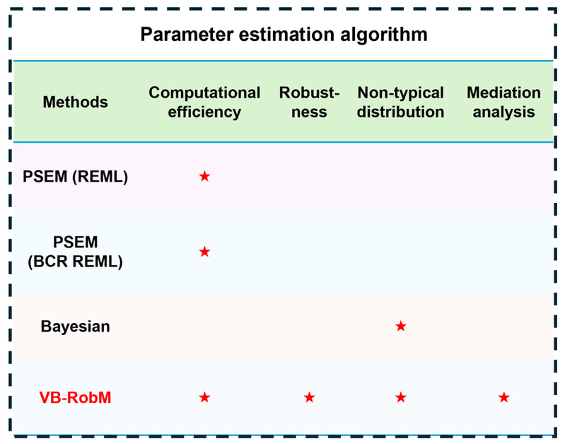 路径分析(path analysis),也被称为“中介分析”(mediation analysis),是揭示研究对象中不同因素之间的相互关系及其影响机制的一种常见重要工具。然而,在生态大数据背景下,由于数据结构复杂、测量标准多样,不同研究所得数据往往存在较大差异。一般情况下,科研人员习惯于运用结构方程模型(Structural Equation Modeling,SEM)进行路径分析,但SEM分析异质性数据时容易产生偏倚。相比于SEM,经典的多元贝叶斯方法虽然更具鲁棒性(Robustness),但受限于算法复杂度大,在分析大规模数据时,贝叶斯计算效率低下、运算时间耗费大、占据CPU内存大。该研究提出了一种全新的路径分析方法——VB-RobM(Variational Bayesian Robust Mediation analysis);该方法融合了贝叶斯推断与SEM的优势,不仅提高了对数据异常值的鲁棒性,减少了估计偏倚,还降低了参数估计的计算成本,所需内存更小,计算结果更加精准。此外,VB-RobM 进一步拓展了路径分析功能,使其能够检验不同因素之间的关联是否由潜在的中介变量驱动,为解析复杂系统中多因子的因果关系提供了更强大的工具,方便应用到自然科学、工程技术科学、人文社会科学、医学科学、农业科学等众多领域。