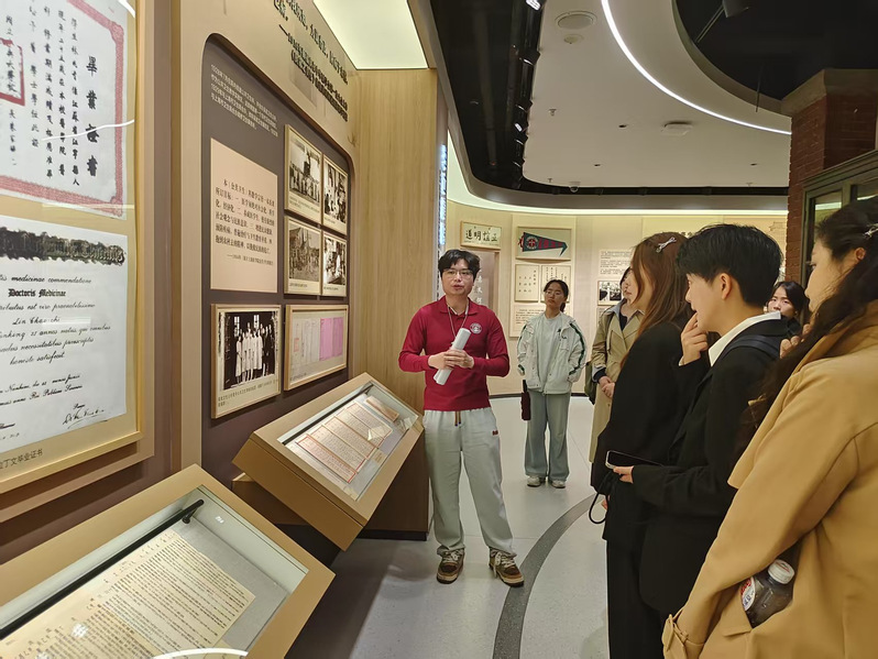 学生前往复旦大学上海医学院院史馆,学习创办人颜福庆先生的医学教育思想。同学们驻足在百年显微仪器、手写科研笔记等珍贵展品前,感悟“惟君建树忙”的实干精神与“科技变革中坚守初心”的科学精神。