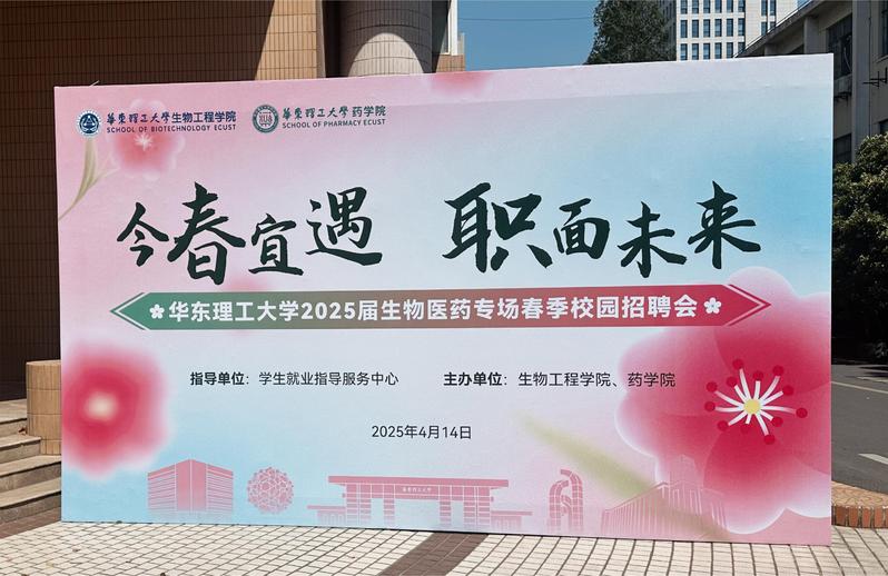 与生物工程学院在徐汇校区逸夫楼联合举办“今春宜遇 职面未来”2025年生物医药专场春季校园招聘会。